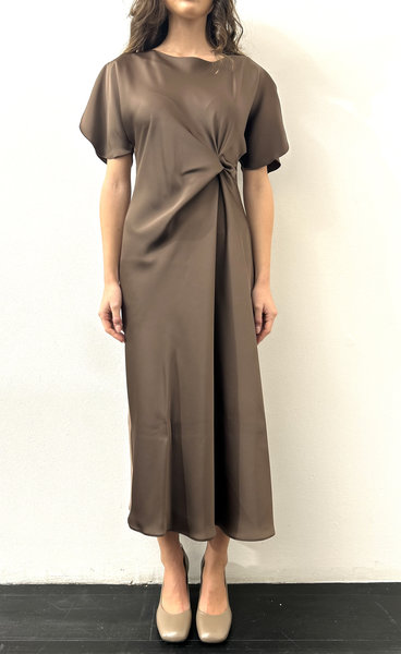 ABITO LUNGO IN RASO FLUIDO DI POLIESTERE GLOBALE 005 TESTA DI MORO