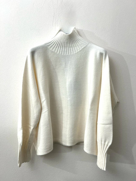 Maglia a scatola, linea morbida, collo alto. Colore: latte