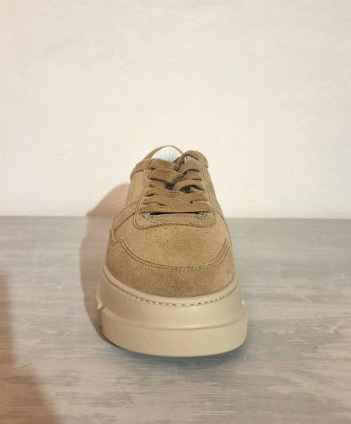 Sneakers in pelle scamosciata color sabbia. Silhouette robusta.