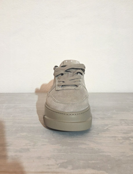 Sneakers in pelle scamosciata color pietra chiara. Silhouette robusta.