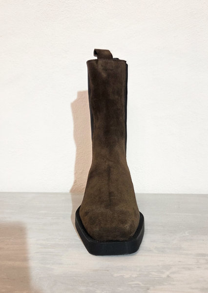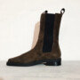 Stivaletti chelsea in camoscio, punta quadrata, modello slip-on e tacco piatto