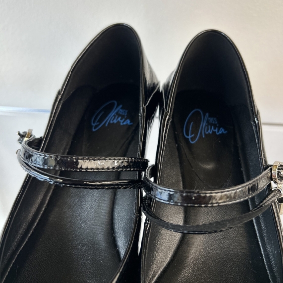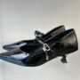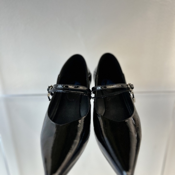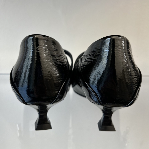 Una decolleté molto morbida. In vernice, con doppio cinturino sul collo del piede. Fibbia grafite.