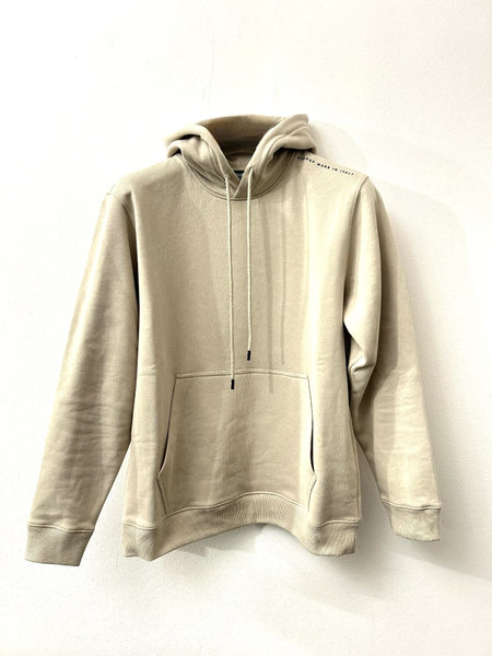 Felpa con cappuccio regular a maniche lunghe con tasca a marsupio e stampa logo sulla spalla sinistra. Felpa di cotone. Logo Dondup. Made in Italy