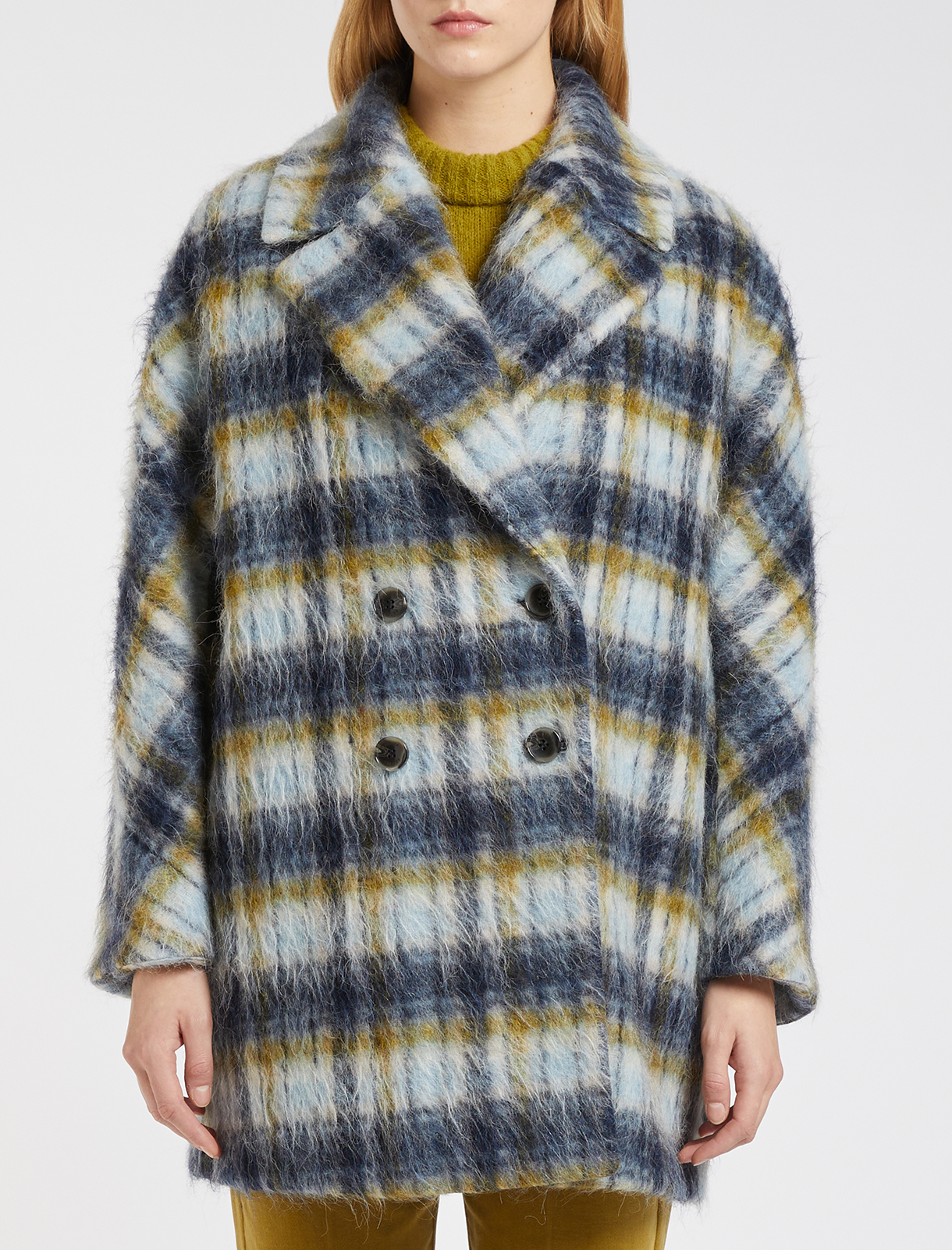 GIACCONE IN MISTO LANA ALPACA GARZATO SOFT PALATIN 004 BLUE CHECK
