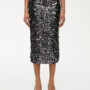 Gonna in jersey tulle con paillettes , linea pencil con pinces dietro, chiusura con elastico in vita.