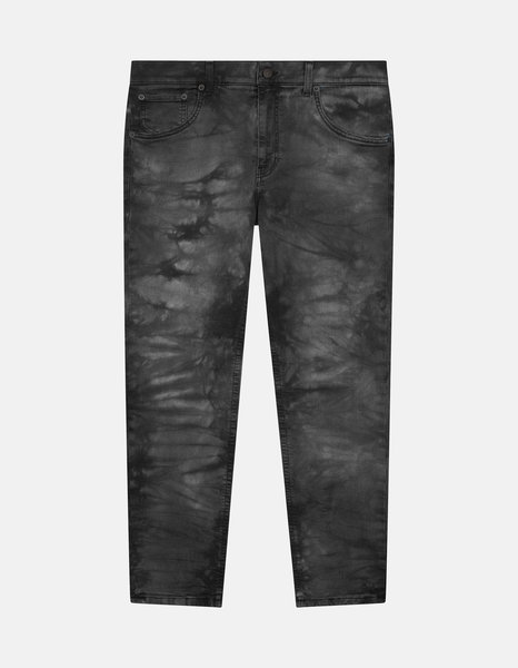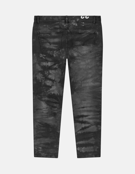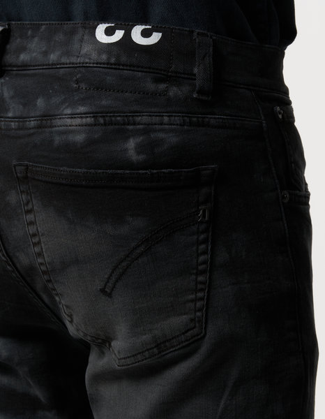 Jeans Alex cinque tasche super skinny fit, vita regolare, cavallo sceso. Denim power stretch riciclato black black 10.50 oz. Lavaggio nero vintage. Logo Dondup. Made in Italy