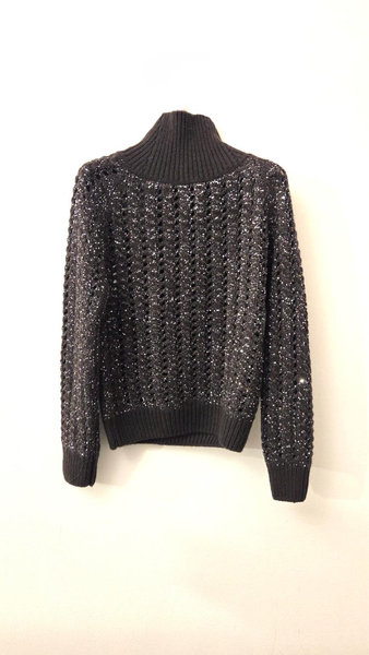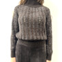 Maglione con collo ampio e lavorazione a trecce e cristalli. Colore: wenge