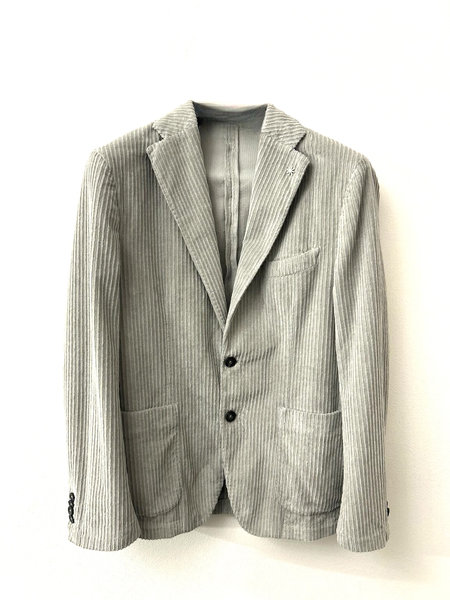 Giacca in velluto, chiusura due bottoni, due tasche a toppa e un taschino frontali.