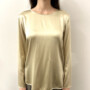 Camicia in raso di seta a girocollo. Linea dritta e vestibilità fluida. Chiusura a goccia con bottone sul retro