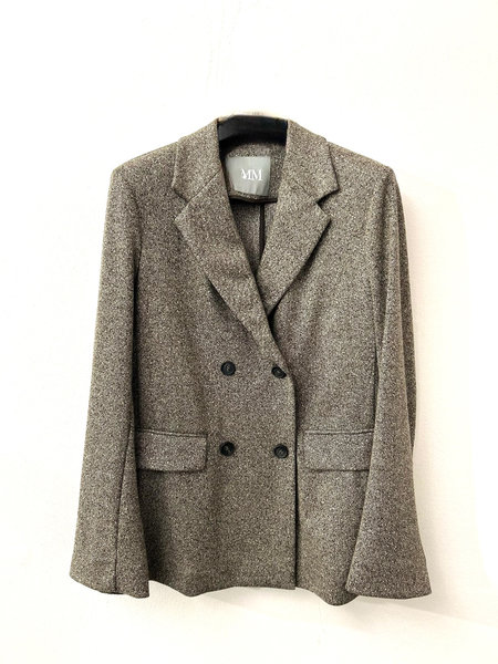 Giacca in jersey jaquard di viscosa stretch a fantasia spigata. Chiusura doppio petto con bottoni, taschini con pattina e maniche lunghe con spalline.