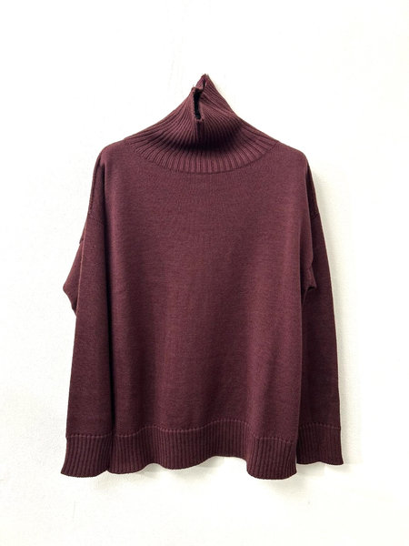 Maglia in lana con collo alto a coste, bordi a coste e maniche lunghe.