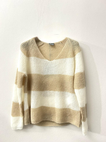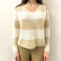Maglia morrbida lavorata a coste inglesi in filato mohair. Vestibilità comoda, scollo a V, maniche lunghe e fondo dritto.
