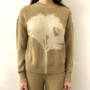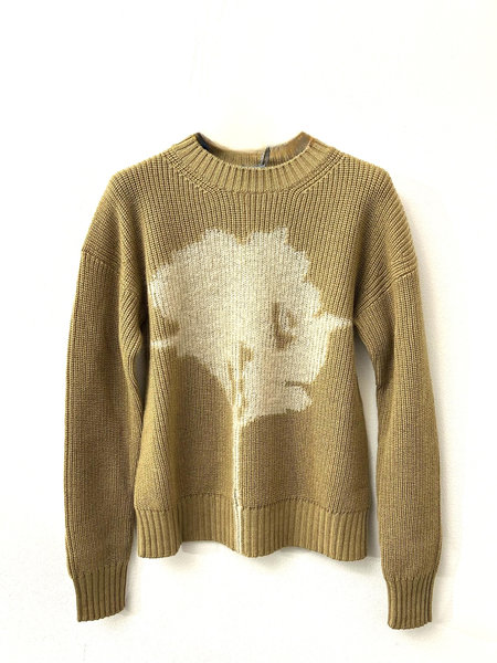 Maglia in lana con scollo tondo, lavorazione a costine, bordi a coste e fiore a contrasto