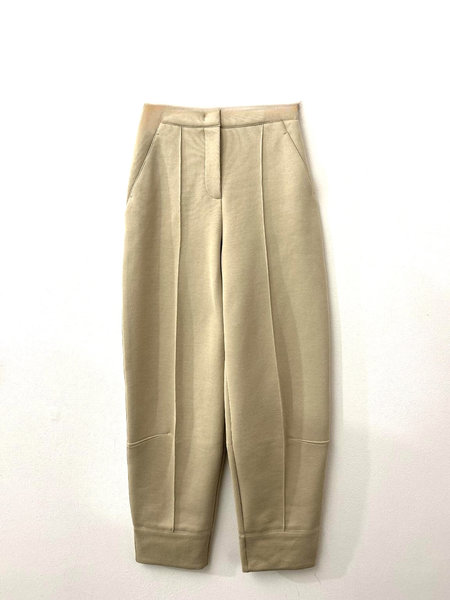 Pantalone in jersey di cotone. Tasche a filetto, piega a risvolto sul fondo. Chiusura con zip e gancetto. Piega verticale sul davanti.
