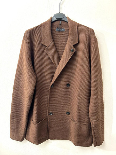 Cardigan doppiopetto con revers e lavorazione a coste. Tasche applicate.
