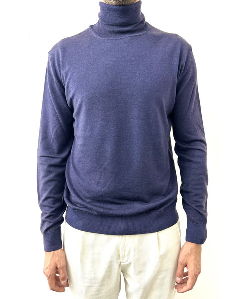 Maglia dolcevita leggera con fondo, polsini e collo lavorato a coste.