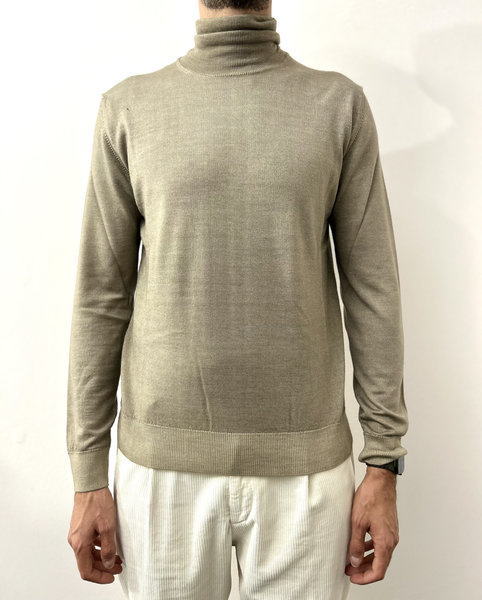 Maglia dolcevita leggera con fondo, polsini e collo lavorato a coste.