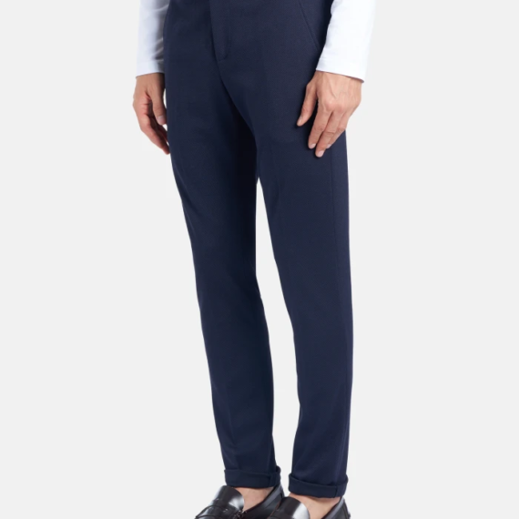 Pantaloni Gaubert slim chino, vita bassa, tasche a filetto posteriori. Punto milano resca. Logo Dondup. Made in Italy