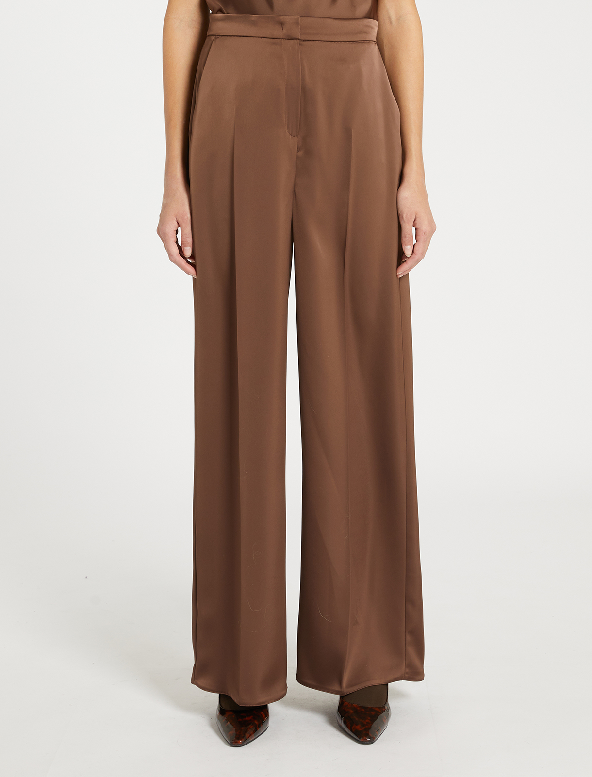 PANTALONE LUNGO IN RASO FLUIDO DI POLIESTERE SANDALO 005 TESTA DI MORO