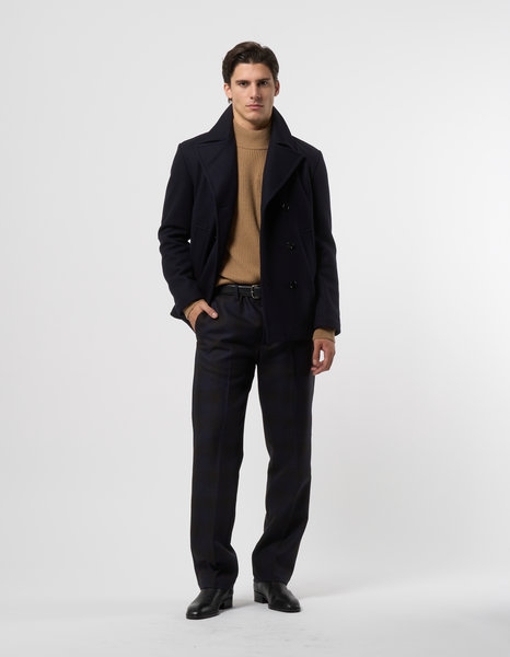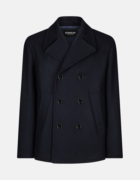 Peacoat doppiopetto regular a sei bottoni con tasche a pistagna ed imbottitura con leggera ovattina. Panno lana cashmere. Logo Dondup. Made in Italy
