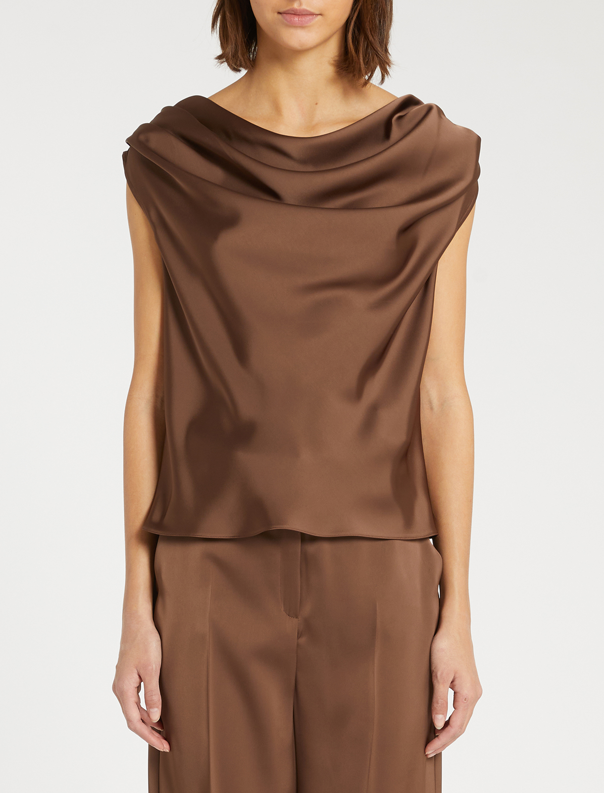 TOP-CANOTTIERA IN RASO FLUIDO DI POLIESTERE CALOTTE 005 TESTA DI MORO