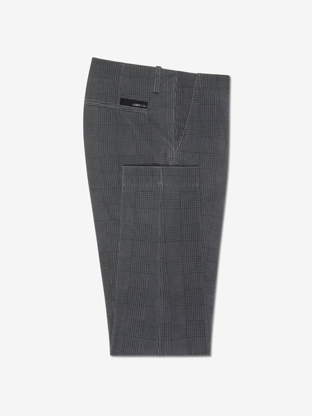 Pantalone in caldo e morbido tessuto SURFLEX® elasticizzato, a effetto velluto floccato millerighe con stampa allover a pigmenti delavé negli intramontabili motivi pied-de-poule e Principe di Galles.